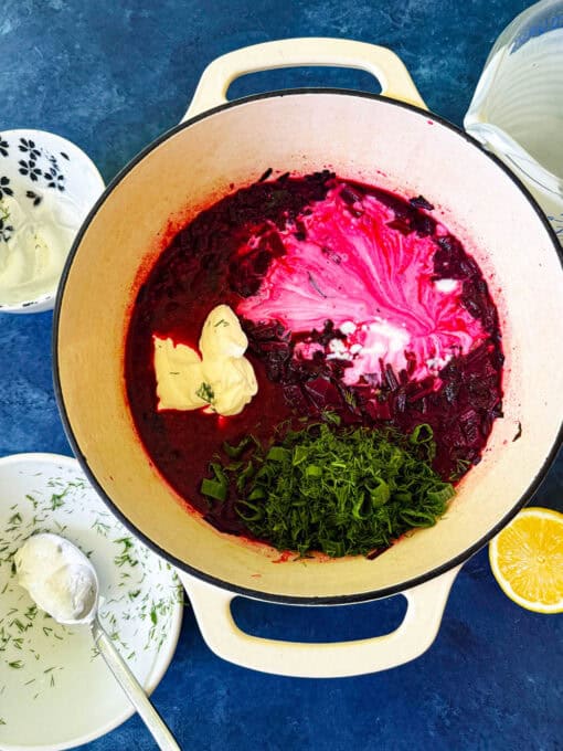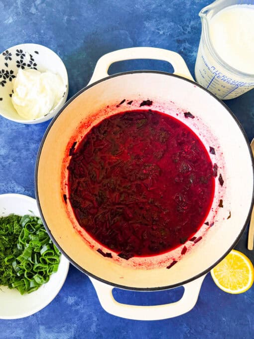 Cold beet soup is a cooked dish that needs to chill before serving. In other words? This is categorically a make-ahead dish! If you want cold soup for dinner, you’ll need to plan ahead to give it time to cool off.