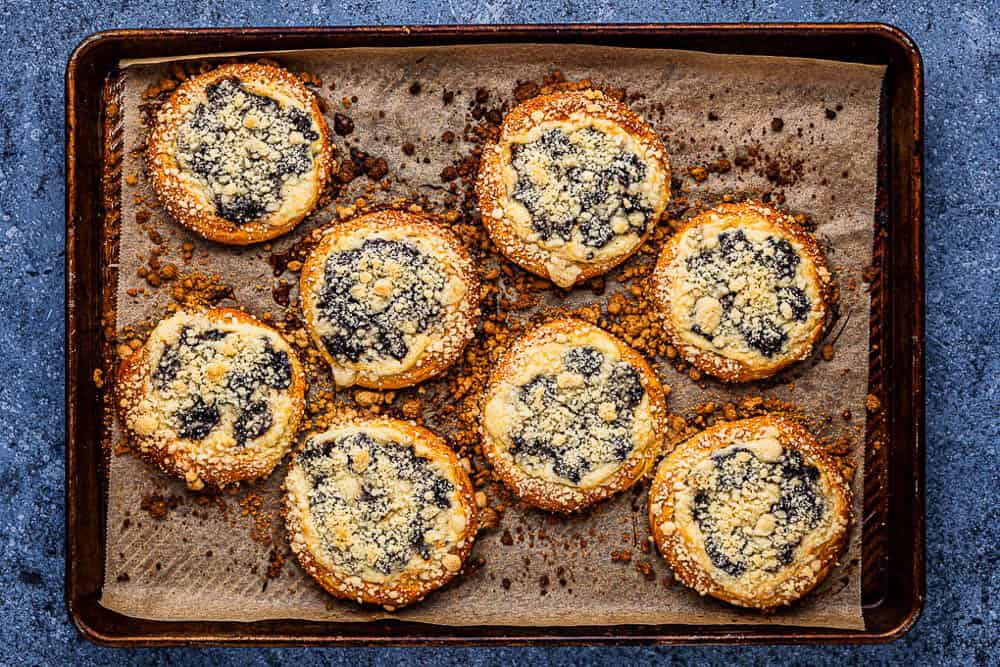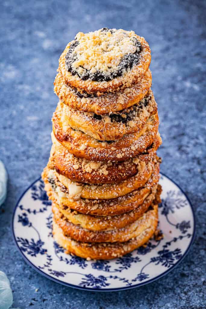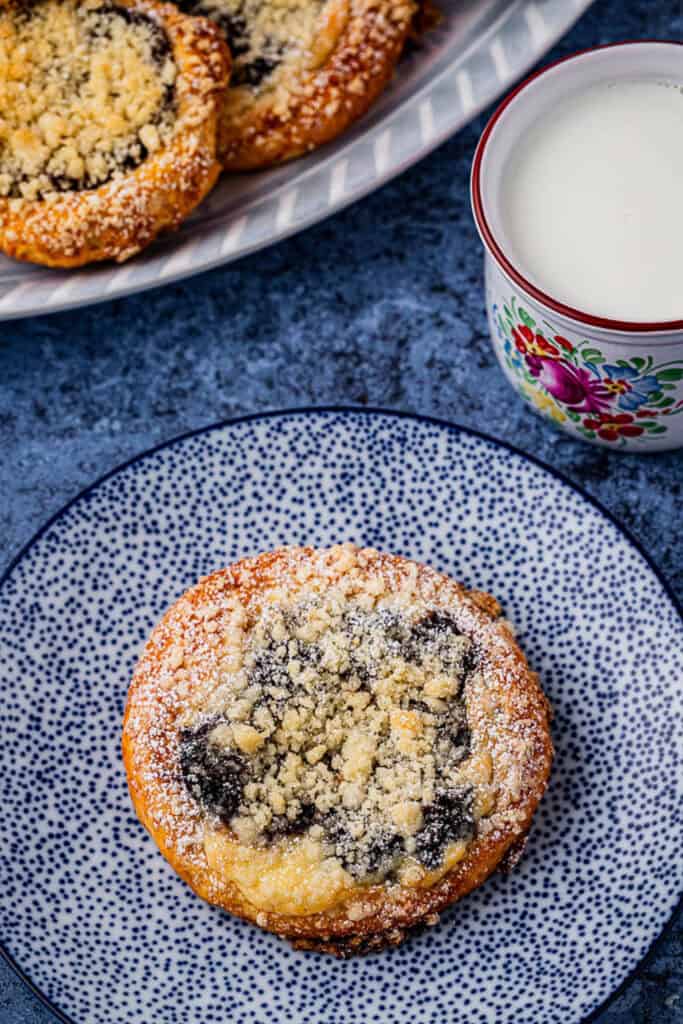The fillings may seem unusual at first but you will soon start to love them as they can be quite addictive. If you’re in a rush, you can just simply fill your koláče with fresh fruits like raw blueberries or peach slices and finish with the streusel on top.