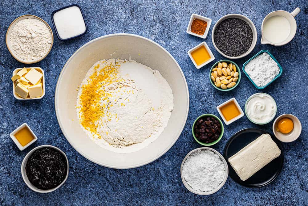 Whole milk will allow the dough to be pliable and delicious. I don’t recommend substituting with less fatty milk in either the dough or the poppy seed filling.