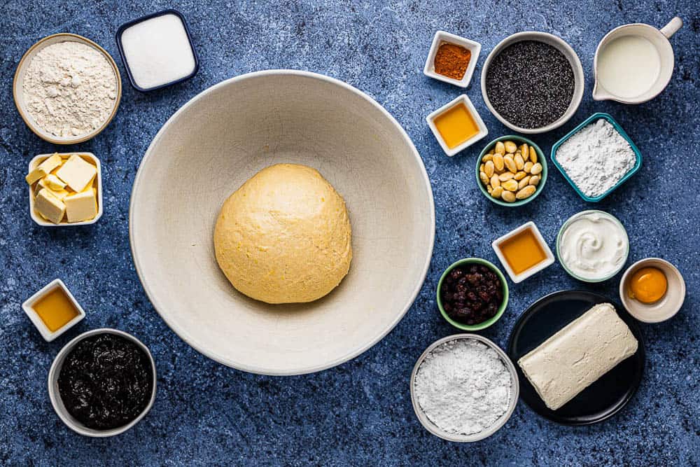 Fresh cheese – another one of the fillings is traditionally made from a type of sweet fermented fresh cheese (soft tvaroh) which basically doesn’t exist in the US apart from some not-so-easily reachable ethnic stores. Instead, I developed another tasty substitute by mixing the same amounts of either cream cheese + skyr or mascarpone + strained cottage cheese. Some of the students in my baking classes who were Czech expats told me that they liked this filling even better than the original!
