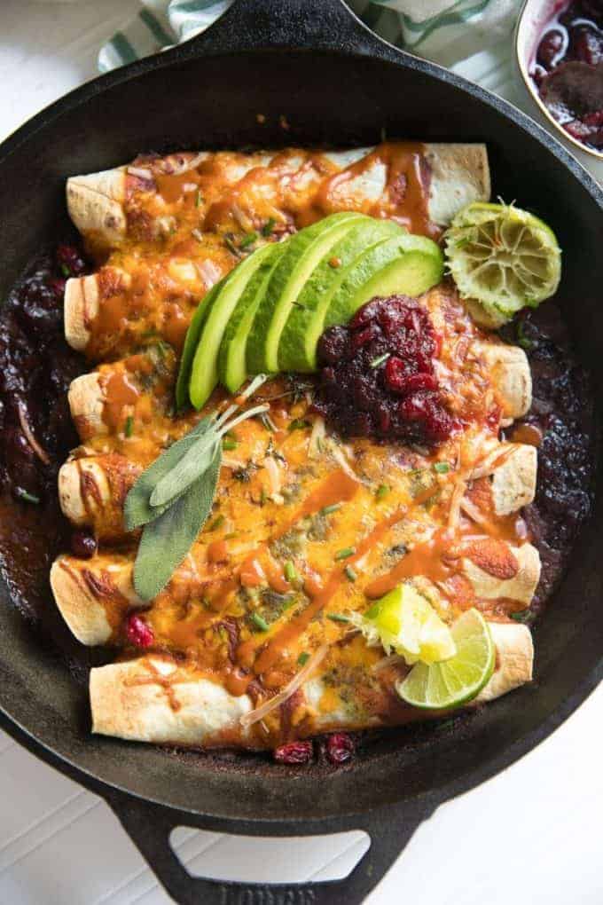 14. Easy, cheesy, and exploding with all those holiday flavors- try this Thanksgiving Leftover Enchiladas!