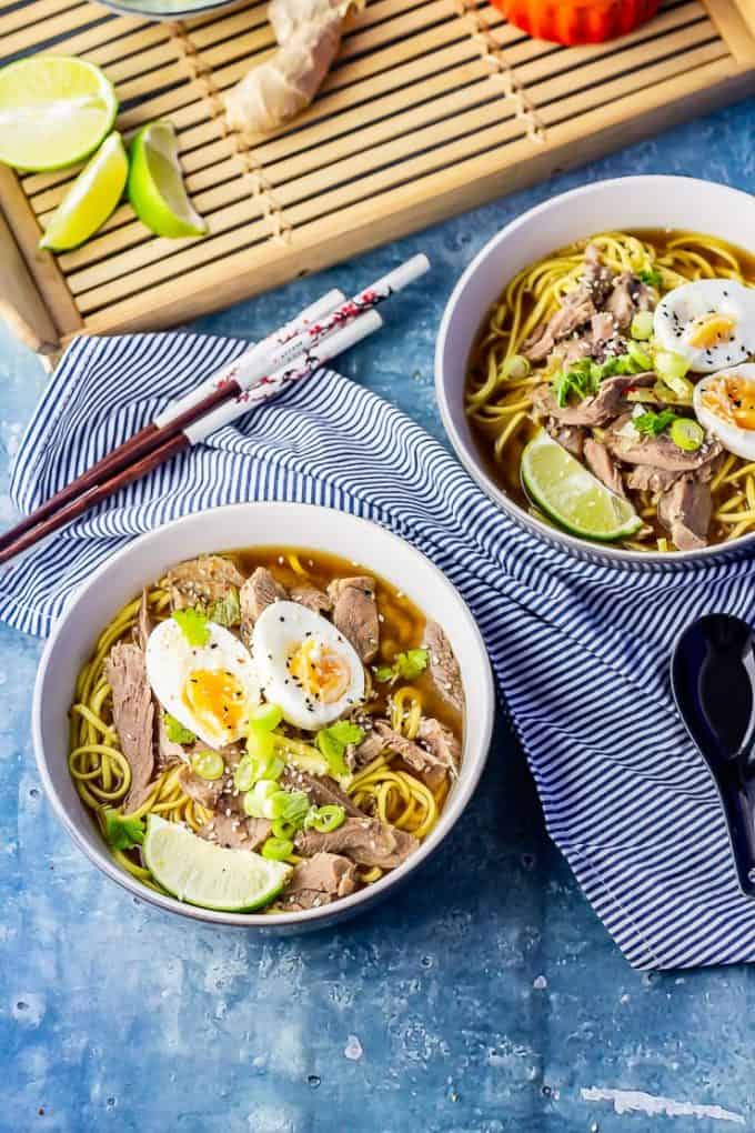 11. Leftover turkey noodle soup is the perfect way to use up your Thanksgiving turkey! Fragrant broth with noodles and topped with a soft-boiled egg will get rid of your post-holiday blues.
