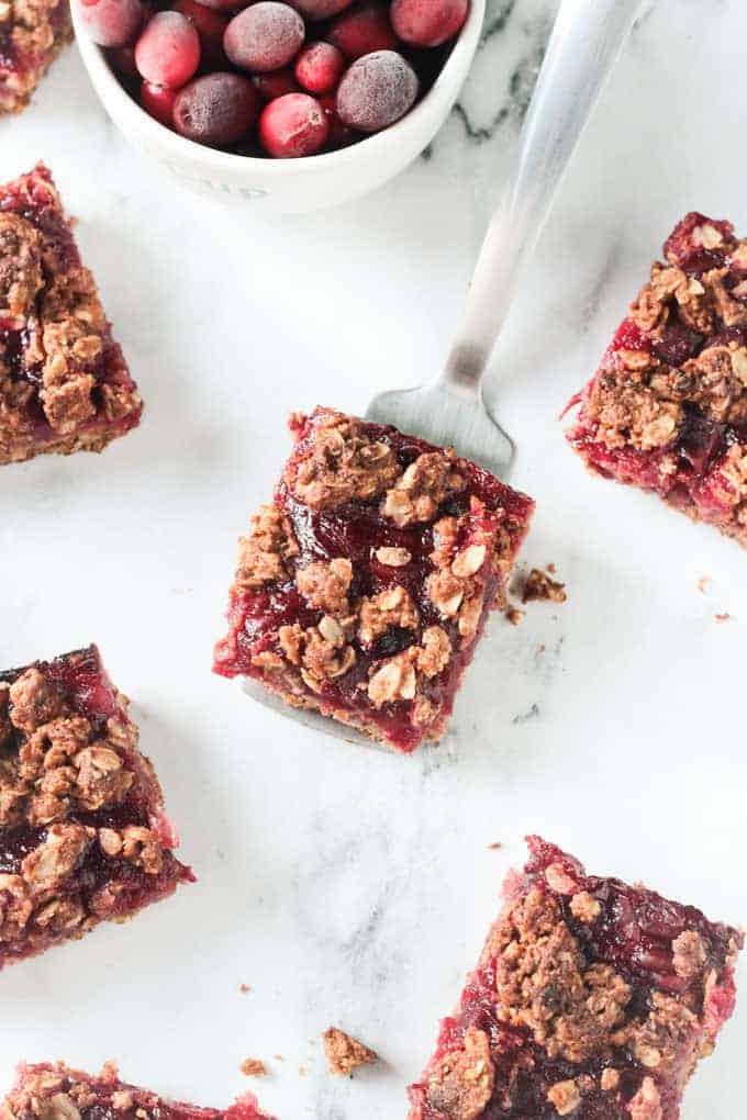 6. Cranberry Oatmeal Bars – sweet, tart, cranberry sauce nestled between a soft oatmeal base and a crumbly oat topping. Use leftover cranberry sauce to make these crumb bars even easier.