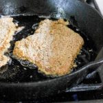 Step 5: Preheat your cast iron skillet until hot, add the clarified butter or oil and let it heat up until hot (sprinkle a little bit of breadcrumbs to see if it sizzles).